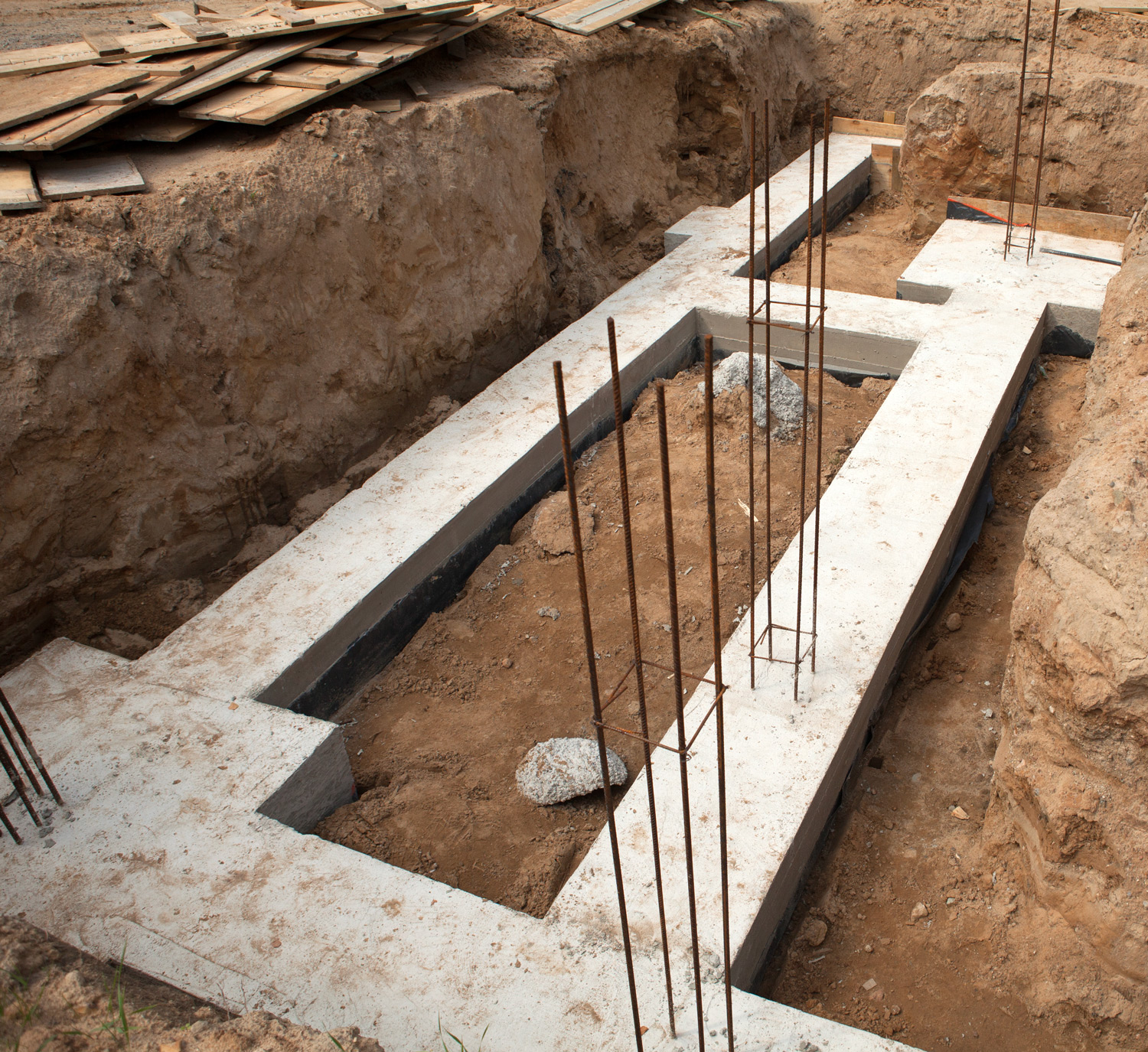 We often install ground loops ahead of the foundation work, so that drilling can happen on rough grade and we’re out of the way before the foundation is poured. This also saves money by eliminating the need for a horizontal tie-in.